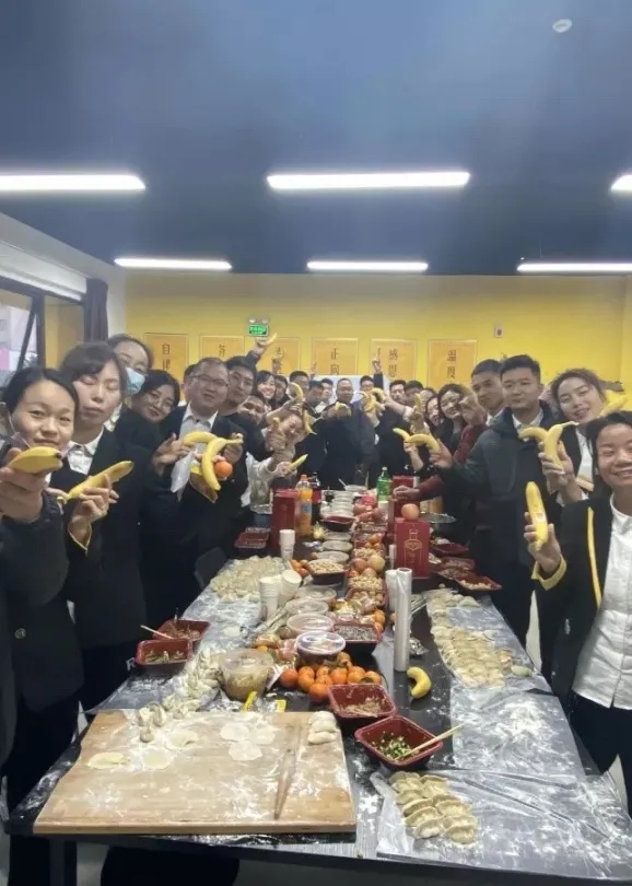 “冬至不端餃子碗,凍掉耳朵沒(méi)人管?!痹谖覈狈?,每年冬至日有吃餃子的習俗,餃子有“消寒”之意,香噴噴的餃子端上桌,再寒冷的冬夜也變得熱氣騰騰,充滿(mǎn)了人間煙火味。懿皇地產(chǎn)的全體家人們每到冬至都會(huì )統一舉行歡度冬至包餃子活動(dòng),大家相聚一刻,共同做游戲、吃餃子、歡度佳節。